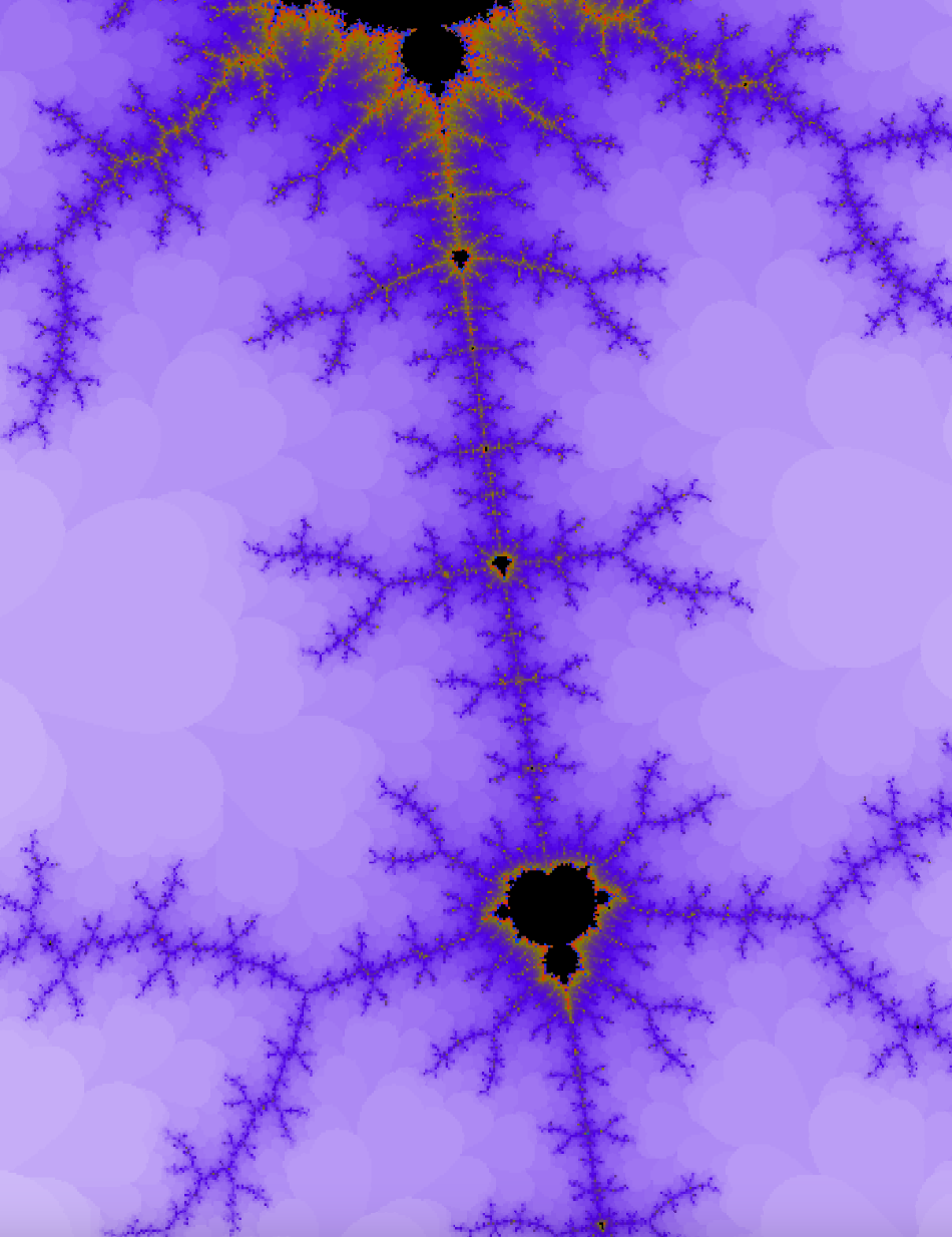 We wanted to experiment with rendering fractals in various ways. We initially wanted to focus on some sort of 3D representation of a fractal (different from a Mandelbulb) and ended up with some interesting renders. We ultimately settled on just making a traditional fractal renderer. Currently, it only supports the Mandelbrot set. However, this project is ongoing, and we'd love to ultimately support all sorts of fractals and allow users to control the color palette.